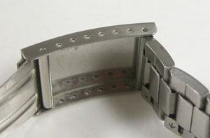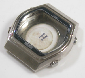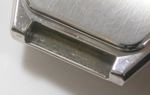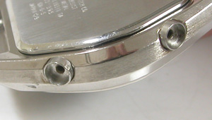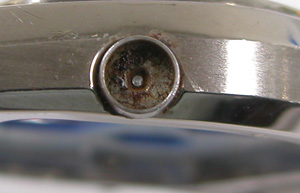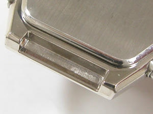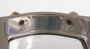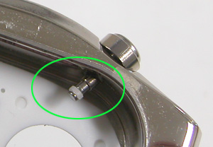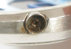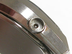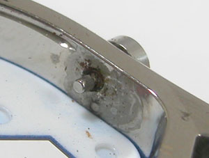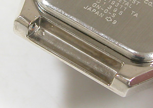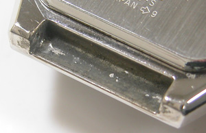 プッシュボタンの周辺にサビが浮いております。裏蓋の裏側もチェックして。