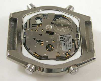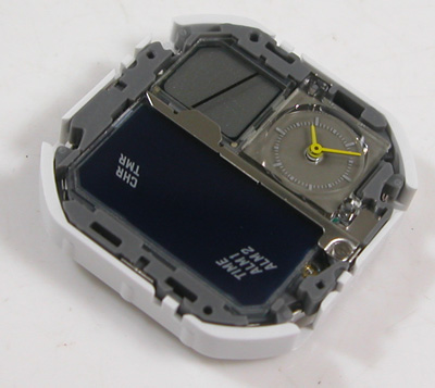 これが取り出した液晶&ムーブメント。ご依頼では無いですが念の為に電池を入れて動作確認。問題無く動作する事のみ確認して電池は外します。