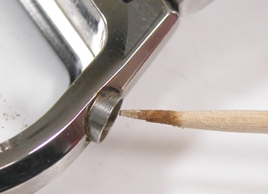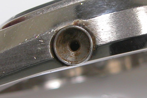 心棒が残って穴を塞いでおります。汚れやサビを除去すると良く分かりますが。