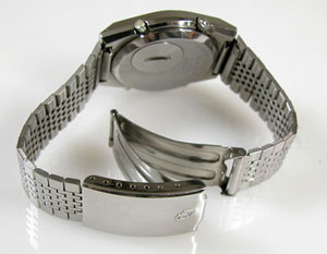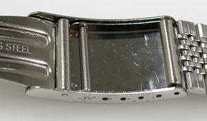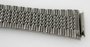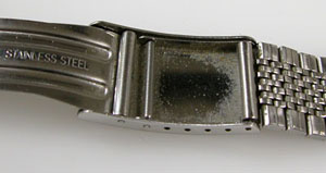 ステンレス板巻きバンドに三つ折れバックル。