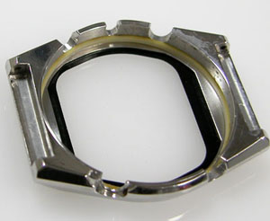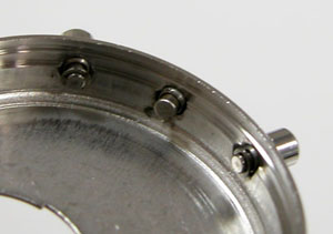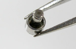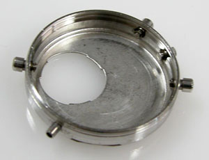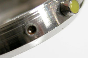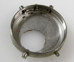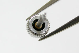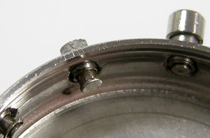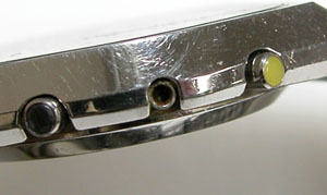 ケースの洗浄は終わってツヤが出ましたね。ただプッシュボタンは動きが悪いので取り外します。