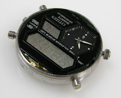 これが取り出した液晶&ムーブメントですが前回もそうでしたが、これ以上は触ると不動になるでしょう。