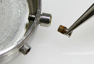 綺麗になったケースにムーブメントを戻して電池格納部をチェックします。