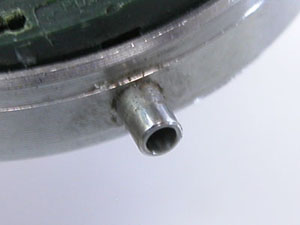 プッシュボタンの錆も綺麗にしていたらプッシュボタンのパイプごと折れ脱落。溶接までは出来ませんから接着剤で取付。でもちょっとぶつけただけで外れるでしょうから「使用は不可」こ鑑賞用となりました。(防水機能無し)