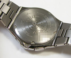 裏蓋はスクリューバックで右が裏蓋記載。