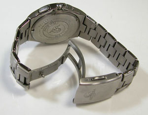 チタン無垢バンドに三つ折れプッシュバックル。