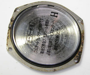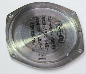 裏蓋は4本ネジで留まっていて右が裏蓋記載。