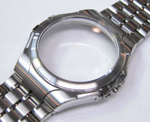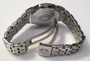 ステンレス無垢バンドに三つ折れプッシュバックルですが薄型ブレスなのにズッシリ重い。