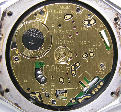 綺麗になったケースにムーブメントを戻して電池格納部をチェックします。