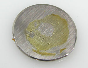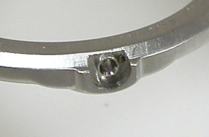 バックル中央に凹みがありますが写真右の○のラインに当たったもの。本来は当たるはずが無いものでバックルの板が凹んでいる証拠。それを修整すれば直ります。