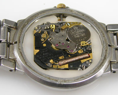 綺麗になったケースにムーブメントを戻して電池格納部をチェックします。