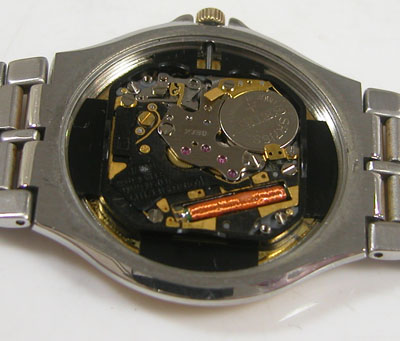 綺麗になったケースにムーブメントを戻して電池格納部をチェックします。