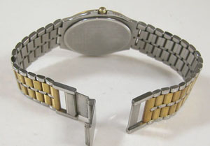 ステンレス板巻きバンドにブレスバックル。