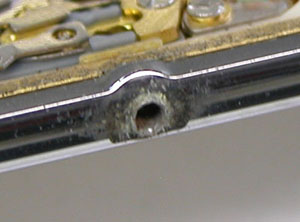 裏蓋の裏側もチェックしますがパッキンは硬化してパリパリ。