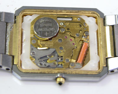 綺麗になったケースにムーブメントを戻して電池格納部をチェックして電池を入れて動作確認。