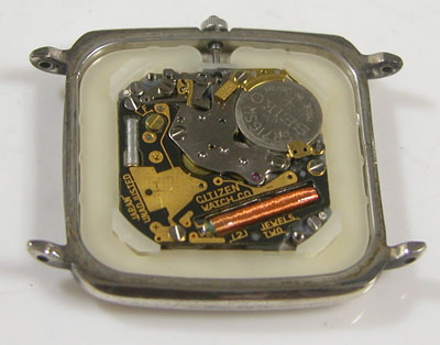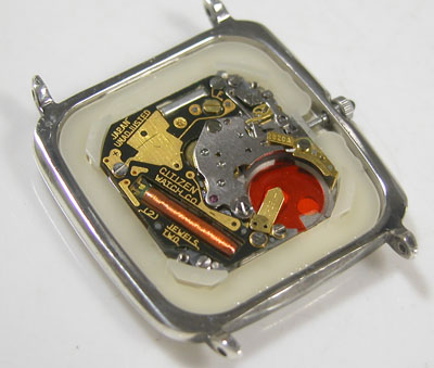 綺麗になったケースにムーブメントを戻して電池格納部をチェックします。