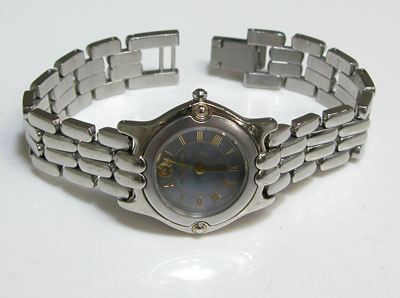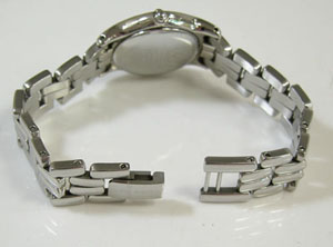 時間を合わせて電池交換完了です。浴室対応の時計ではありませんね。あとは「バックル留めの締め」は完了し「裏蓋の裏側の変色」。これは施しようがありませんが変色自体、問題はありません。それによって腐食や錆も無いでしょう。