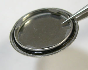 綺麗になったケースにムーブメントを戻して電池格納部をチェックします。