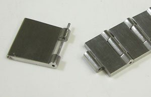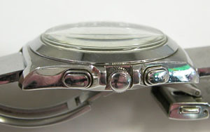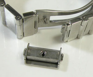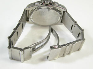 ステンレス無垢バンドに三つ折れプッシュバックル。