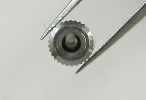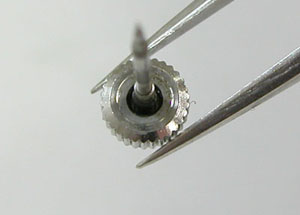 ラグ部のバネ棒も交換します。細くて特殊なバネ棒ですから本来のラグ部用では入らない。
