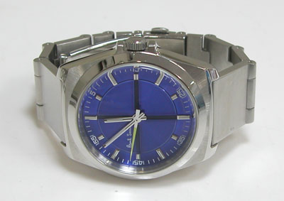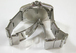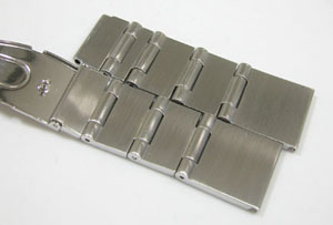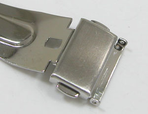 ステンレス無垢バンドに三つ折れプッシュバックル。