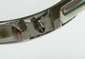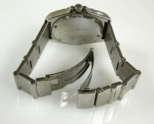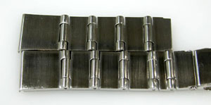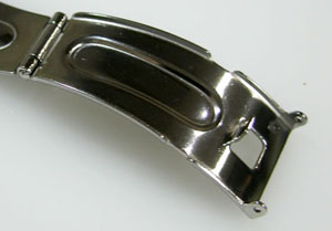 ステンレス無垢バンドに三つ折れプッシュバックル。