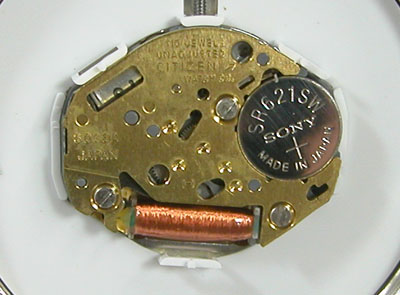 綺麗になったケースにムーブメントを戻して電池格納部をチェックします。
