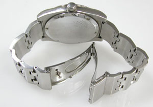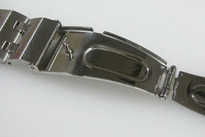 ステンレス無垢バンドに三つ折れプッシュバックル。