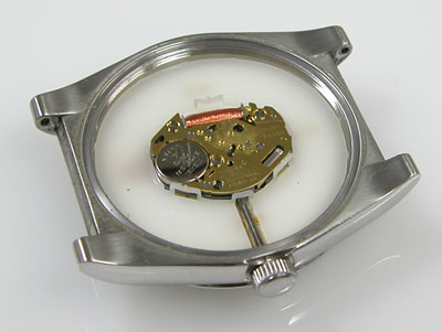 綺麗になったケースにムーブメントを戻して電池格納部をチェックします。