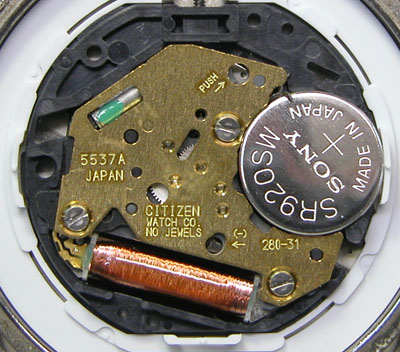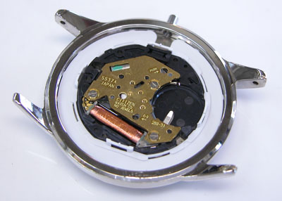 綺麗になったケースにムーブメントを戻して電池格納部をチェックします。