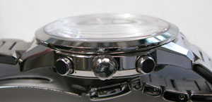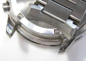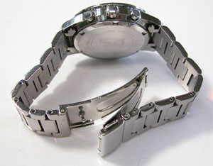ステンレス無垢バンドに三つ折れプッシュバックル。