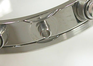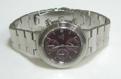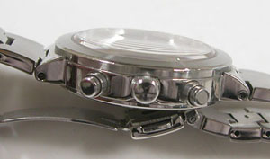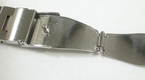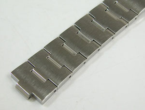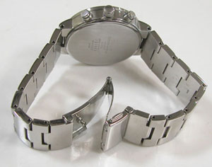 ステンレス無垢バンドに三つ折れプッシュバックル。