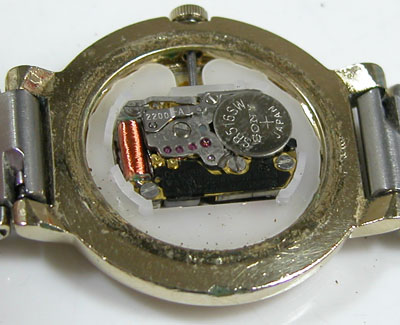 綺麗になったケースにムーブメントを戻して電池格納部をチェックします。