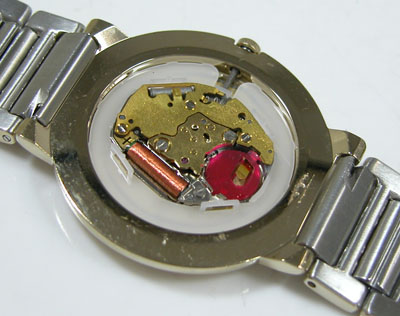 綺麗になったケースにムーブメントを戻して電池格納部をチェックします。