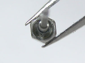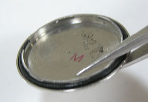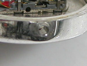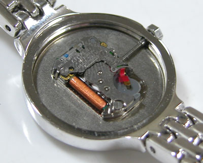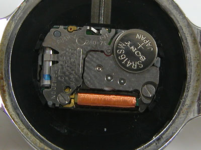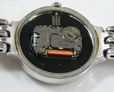 外したパーツを戻していき電池を入れて動作確認。この指紋が気になりますが、意外に簡単に拭く程度は落ちない。となると小さなムーブメントですから変に圧力を加えると不動の原因になりますから触らないと。