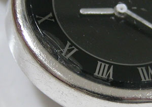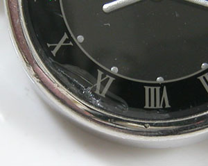 角度によって大きく割れて見えますが表面は触っても分からない。内側に割れております。ただ亀裂だけでケースとの隙間がある訳ではないようです。