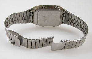 ステンレス板巻きバンドにスライドバックルは当時のままで懐かしい。