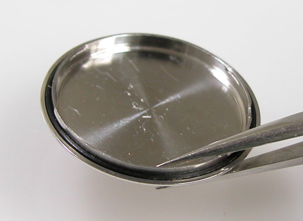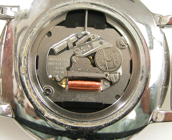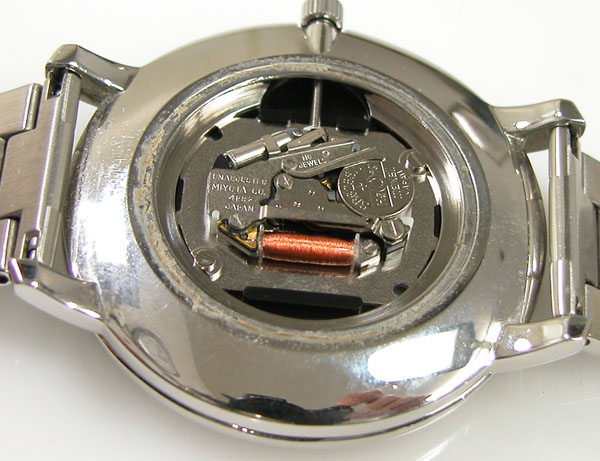 綺麗になったケースにムーブメントを戻して電池格納部をチェックします。