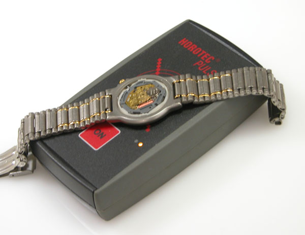 強制運針器に掛けてもピクピクするだけで不動。となるとピンセットで歯車を回してやり再度、強制運針器に掛ければ動き出しました。