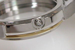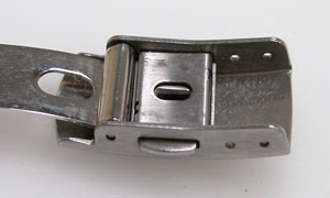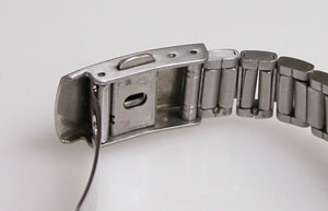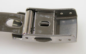 ステンレス板巻きバンドに三つ折れバックル。
