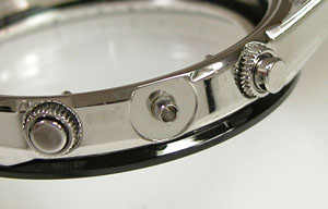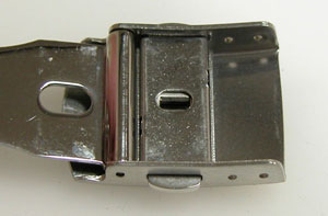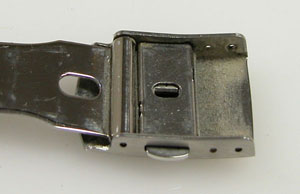 ステンレス板巻きバンドに三つ折れプッシュバックル。