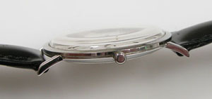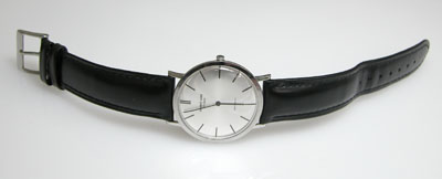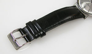 遊び革の状態もチェックします。ガラスはプラスチックですから昔の手巻きゼンマイ時計の雰囲気。
