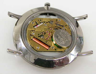 裏蓋は”はめ込みタイプ”で裏蓋記載。この記載はCITIZENですね・・・こういう名前の時計を出していたとは知りませんでした。