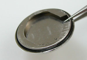 綺麗になったケースにムーブメントを戻して電池格納部をチェックします。