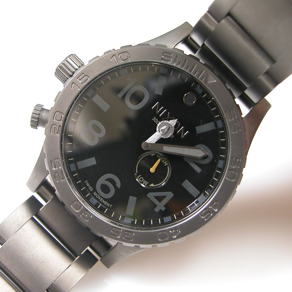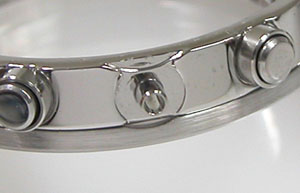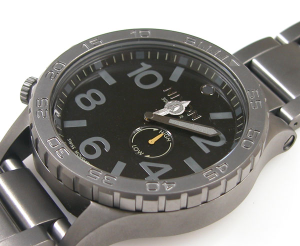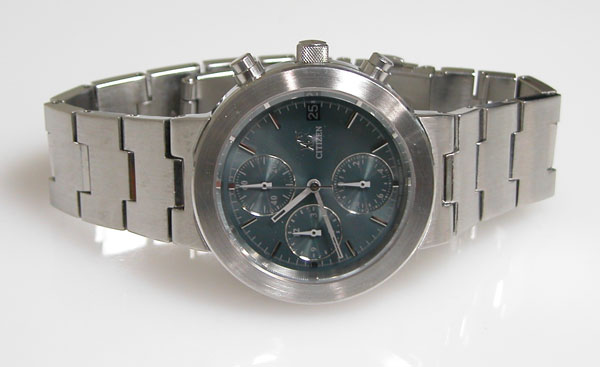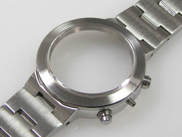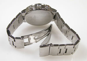 ステンレス無垢バンドに三つ折れプッシュバックル。