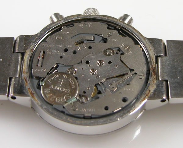 綺麗になったケースにムーブメントを戻して電池格納部をチェックします。