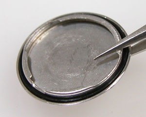 綺麗になったケースにムーブメントを戻して電池格納部をチェックします。