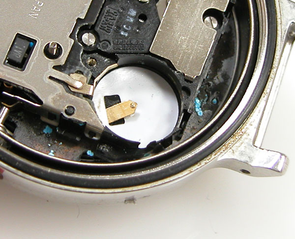 これは液漏れの名残ですから、一度電池が粉まみれになっていた痕跡。