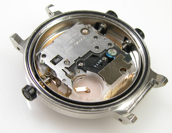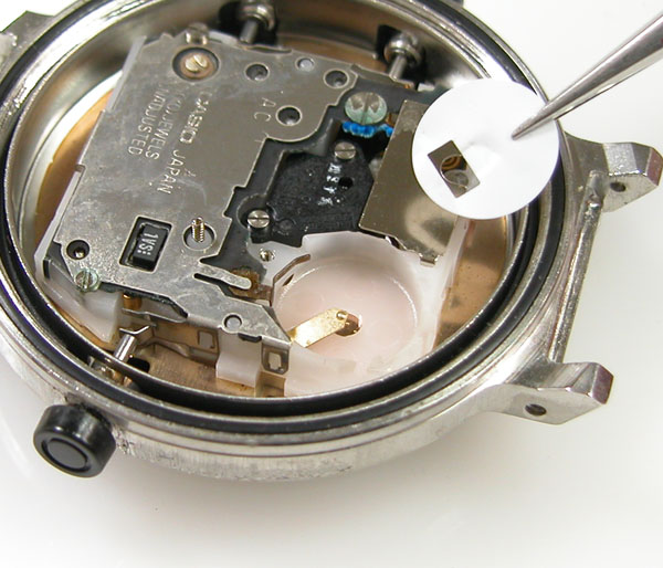 ムーブメントの湿気の痕跡も拭き取って。電池を入れて動作確認ですがはやり不動。