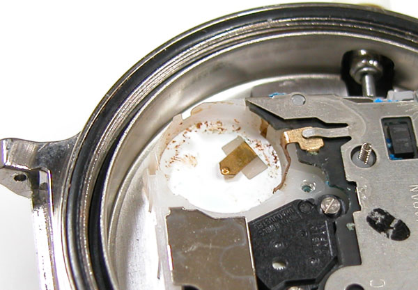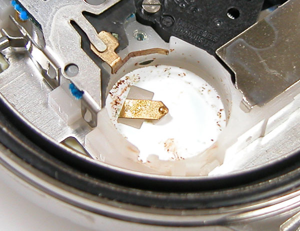 電池格納部をチェクしますが錆びた粉が。